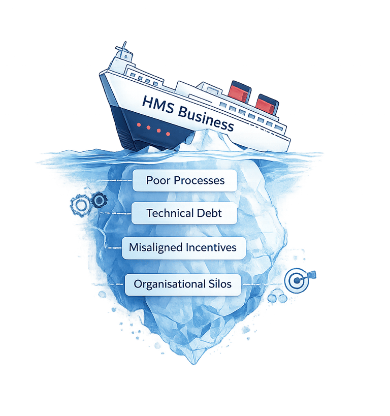 Much like an accident investigation doesn’t blame “the ocean” for a sinking ship, we don’t blame attackers, users, or tools. We examine the specific conditions within your organisation that made failure likely — and repeatable.